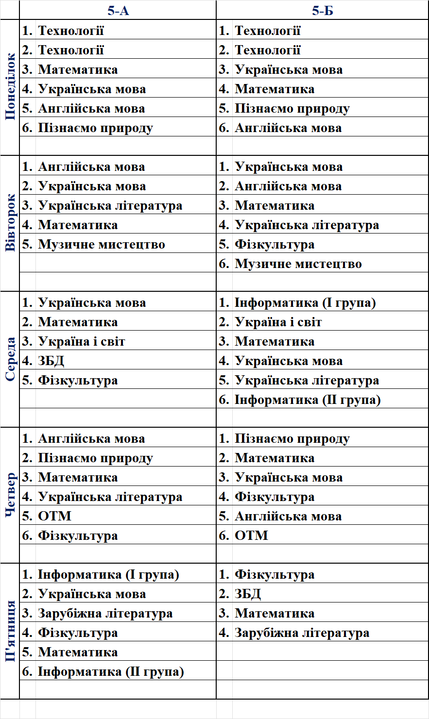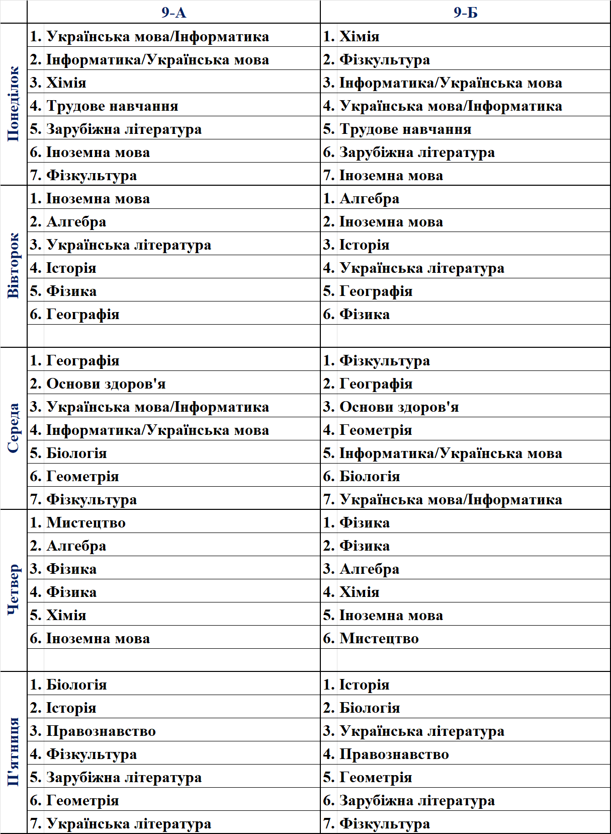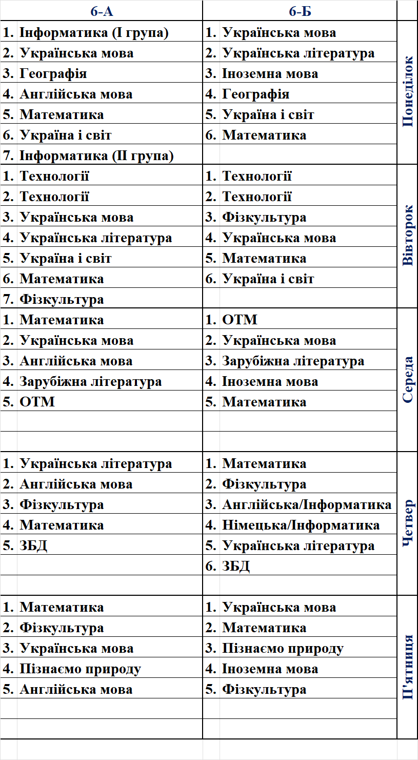 Розклад уроків